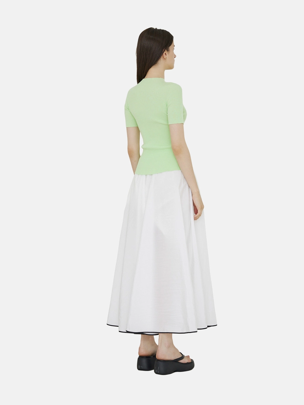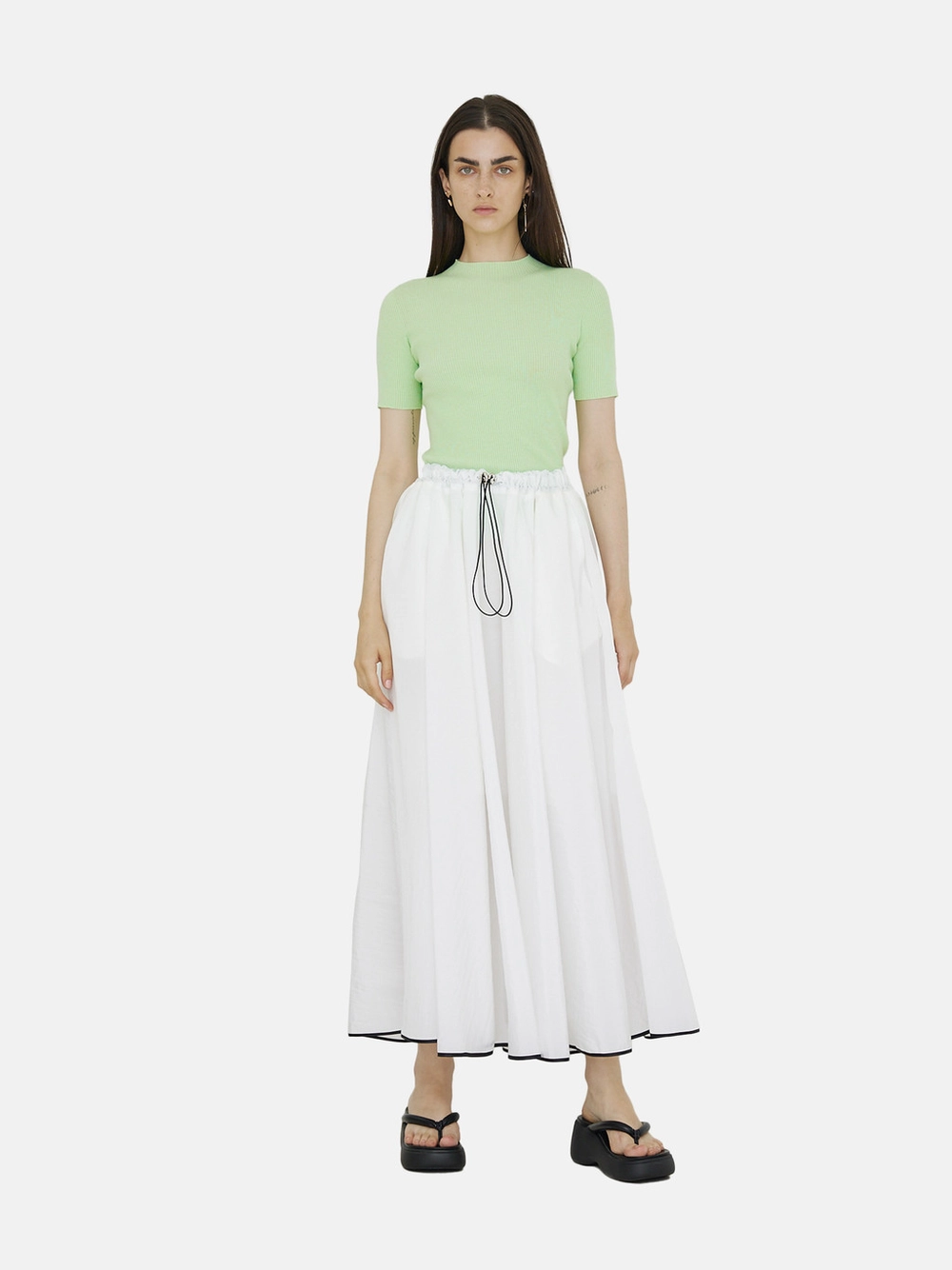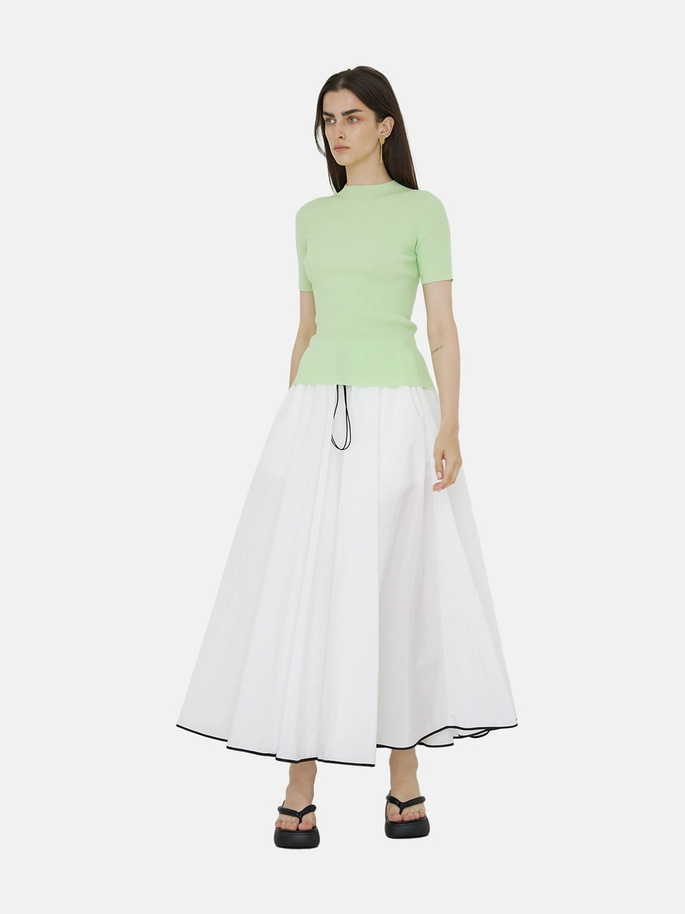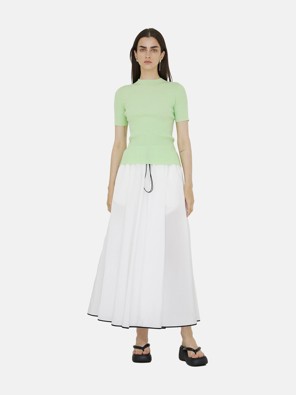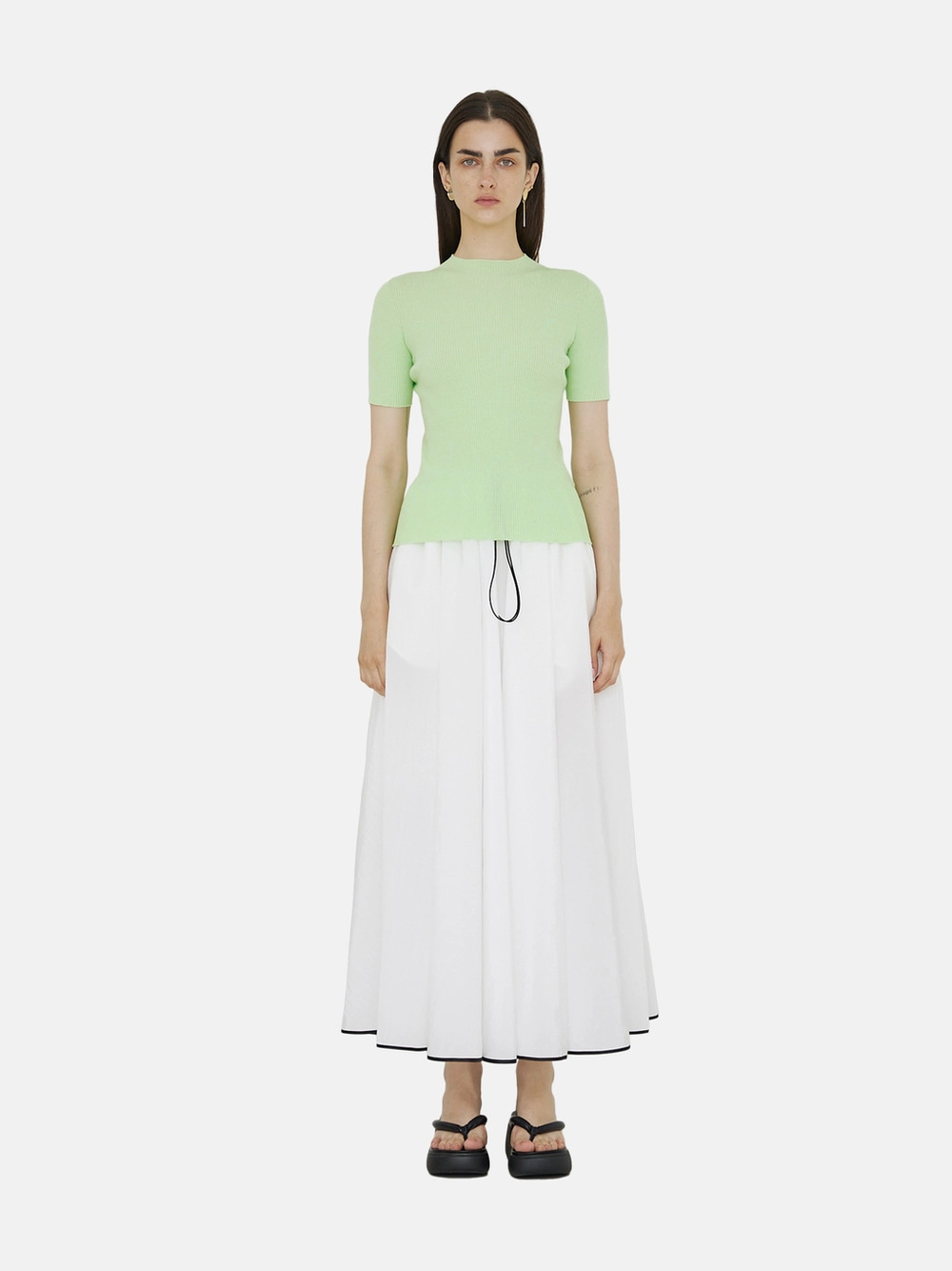 Minimal and stylish three-dimensional draping knit top.