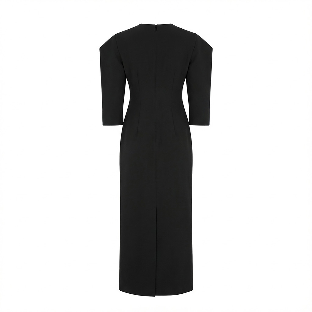 Sleeveless long dress in black.